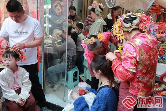 很多游客来泉的重要打卡事项便是簪花。洪嘉锴 摄