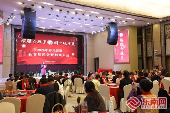 东南网2月28日讯(本网记者 施远圻 通讯员 庄冬梅)春回刺桐,福满开元。2月28日下午,泉州市鲤城区开元街道举行2026年新春恳谈会暨招商大会,街道乡贤、商会会员、重点企业负责人、高层次人才以及“七小业态”代表齐聚一堂,共叙乡情,共谋发展。 本次大会不仅是一次共贺新春的聚会,更是一场成果丰硕、诚意满满的“双向奔赴”。在备受瞩目的重点项目签约仪式上,泉州“海丝视界”融合媒体总部、泉州文旅酒店集群投资、AI产业专项基金、鲤城厝里文化产业园等10个重点项目集中签约,涵盖数字经济、文旅酒店、人工智能、产业园区、跨境电商等多个新兴领域,为街道新一年发展注入强劲动能。