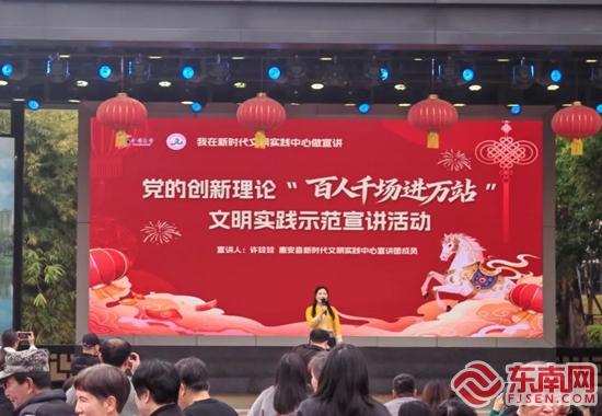 党的创新理论“百人千场进万站”文明实践示范宣讲。主办方 供图 活动现场还特别安排了党的创新理论“百人千场进万站”文明实践示范宣讲,让党的创新理论随新春祝福走进千家万户,为年味添上浓厚的理论氛围与文明底色。 舞台之外,同样暖意融融、人气满满。“春风送暖·便民服务”区域提供爱心义诊、义修、磨菜刀等贴心服务,深受居民欢迎。在“雅趣传礼·互动体验”区,灯谜竞猜、马年心愿福袋、文明投壶、马年花灯手作等项目吸引了众多群众参与,大家在趣味中感受文明礼仪的魅力。同时,“新风润心·明礼展宣”区域,各相关单位围绕“洁净有礼”“出行有礼”“上网有礼”“习俗有礼”等八大主题开展集中宣传展示,营造“惠安好习惯”浓厚氛围,引导市民自觉践行文明新风尚。 |