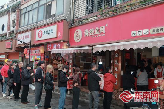 “海丝金凤”元宵圆门店,排着长队的顾客队伍。洪嘉锴 摄 东南网3月3日讯(本网记者 陈诗婷 实习生 洪嘉锴)正月十五元宵节,“宋元中国·海丝泉州”的街巷里,年节的甜香正悄然弥漫。一碗热气氤氲的元宵圆,是泉州人餐桌上的节令标配,更是刻进闽南人骨血的年节仪式——这口老铺里的“元宵甜”,从宋代“吃福圆子”的记载里走来,把“头圆尾圆”的民俗讲究,化作开启一年圆满的温柔符号。 泉州人说“头圆尾圆”,“海丝金凤”元宵圆第四代传人林永松对此格外笃定:“正月十五的元宵圆是‘头圆’,冬至的小汤圆是‘尾圆’,吃下这碗,一年的圆满才算真正开始。”这份深植于心的仪式感,在古城老铺里,被一代又一代人用心坚守。 元宵前后,金鱼巷的“海丝金凤”老店门前,队伍从早到晚不曾断过。老泉州人拎着搪瓷碗排队,游客跟着导航慕名而来,林永松和店员们在案板与糯米粉盘间忙碌,打包、称重、备货,烟火气里,是老手艺的传承,也是新滋味的生长。 “每年就这两天最忙,今明的光景和平时完全不一样。”林永松说。今年元宵恰逢连日阴雨,市民到店不便,线上配送成了新通道。线上线下双线热销,让这碗古城甜,走出街巷,走向更远的餐桌。 客群的分层,在双线经营中愈发清晰。线下门店里,多是老泉州人与结伴而来的游客,一碗元宵圆,成了外地人读懂闽南民俗的小小窗口;线上订单则以年轻人为主,无糖、无猪油等个性化定制需求,今年明显多了起来。即便新需求层出不穷,以花生、芝麻、白糖、猪油与葱头调和的传统口味,依旧是店里的销售主力——老味道,始终是泉州人心中的不二之选。 泉州元宵圆的独特,藏在“滚”出来的古法里。与常见汤圆“包馅”不同,这里的元宵圆,要先将馅料敲制成丸,再沾水反复滚上水磨糯米粉,一滚一制,皆是传承。“葱头增香,猪油润口,这是泉州人记忆里的味道。”林永松的话语,道出了老铺坚守的底气。 “第一次吃,和北方的完全不一样,香得很!”游客李先生尝过后,直言元宵当天还要再来。市民陈女士则是店里的老主顾:“每年都来,既是祭拜先祖的习俗,也是放不下的节日情结。”一碗甜圆,牵起了游客的新鲜感,也系着市民的乡愁。 自小跟着父母做元宵圆的林永松,大学毕业后便回乡接过了这份手艺。“累是真累,节日里忙得脚不沾地,但老顾客的一句‘还是这个味’,就觉得值了。”千百年流转,生活日渐富足,口味愈发多元,不变的是藏在元宵圆里的团圆期盼,是刻在闽南人心中的乡愁印记。“口味可以变,消费形式可以变,但我们对这个节日、对这份乡愁的珍视,万变不离其宗。” 夜幕降临,古城花灯次第点亮,刺桐街巷灯火璀璨。一碗热乎的元宵圆,在袅袅热气中,裹着花生芝麻的醇香,载着四代传承的匠心,将千年民俗与万家团圆,温柔延续——这口老铺里的“元宵甜”,成为泉州人心中绵长、温暖的年节记忆。 |