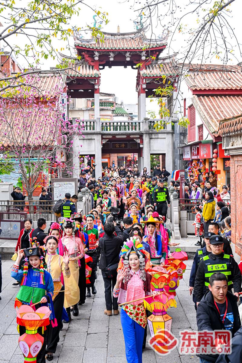 东南网3月3日讯(本网记者 林杰 杜志鑫 通讯员 游雯星)3月3日,正月十五元宵佳节,泉州古城西街与中山路迎来一场别开生面的文化快闪活动——10位国际超模携手百位惠安女,以惠安女传统服饰为媒,开展日间踩街、走秀及夜间彩灯巡游,吸引众多市民游客驻足互动。