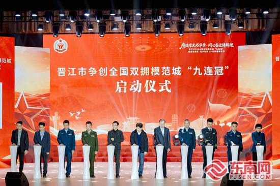 启动仪式现场。主办方 供图 东南网3月11日讯(本网记者 陈诗婷)近日,晋江市争创全国双拥模范城“九连冠”暨“崇军拥军·逐梦新程”2026新春嘉年华文艺晚会举行,标志着晋江正式开启双拥模范城“九连冠”争创新征程。 晋江市委副书记陈友爱表示,争创“九连冠”是服务国防建设的政治责任,也是晋江人民与驻晋部队的共同心愿。晋江将持续推出惠军举措,丰富双拥内涵,让尊崇军人、关爱军属成为城市鲜明底色,奋力谱写好军地团结共发展新篇章。 现场举行了多场双拥共建活动。“情暖老兵”崇军联盟授牌仪式中,中国工商银行晋江分行、晋江农商银行等11家单位获颁牌匾;“闽货进军营 双拥促消费”合作单位授牌仪式上,盼盼、七匹狼、力诚等12家晋江知名企业接牌。此外,12名来自5家科研院所的专家受聘成为退役军人创业“智囊团”,5家科研机构与晋江市退役军人就业创业促进会签署“科技赋能 军创同行”合作协议,共同推动退役军人就业创业。 自1997年首次获评全国双拥模范城以来,晋江构建“政府引导、民企先行、社会协同”机制,已实现全国双拥模范城“八连冠”。据晋江市退役军人事务局相关负责人介绍,接下来将以争创“九连冠”为抓手,深化“军地商”共联共建,聚焦子女教育、家属就业、父母养老等民生需求,以“后方无忧、助力前方无畏”推动双拥工作再上新台阶。 晚会上,锦塘舞龙队《龙马精神耀晋江》、福建省芭蕾舞协会《芳华》、军营四点钟学校小朋友《军娃娃》、中国退役军人合唱团泉州分团《我是一个兵》《当那一天来临》等节目轮番上演,充分展现退役军人退役不褪色的精神风貌与双拥共建的时代热情。 |