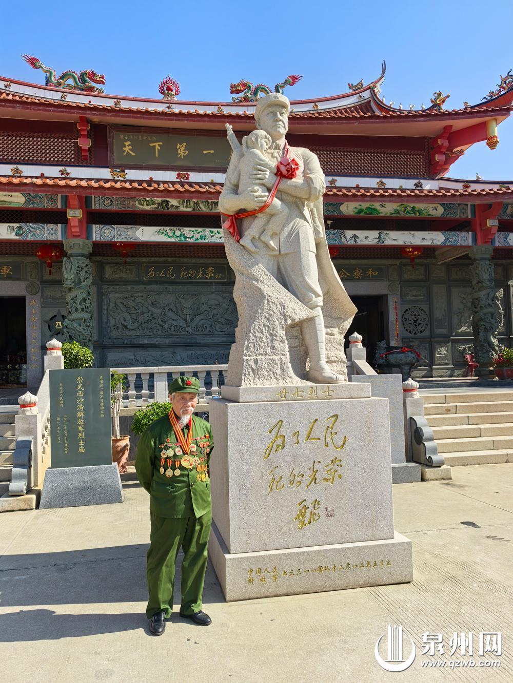 来自上海的抗美援朝老战士张建群到访惠安县崇武镇解放军烈士庙并留影 解放军烈士庙,位于惠安县崇武镇,是全国唯一一座纪念中国人民解放军的庙宇。庙内供奉着27尊解放军泥塑,记录着1949年9月西沙湾那场悲壮的空袭:为掩护当地群众,24名解放军战士壮烈牺牲。被救群众之一的曾恨(原名曾阿兴),从此用一生守护英魂。 1993年,曾恨变卖家产,在乡亲们支持下,历经3年建成此庙,祭奠这24位烈士和为解放崇武牺牲的另外3位解放军烈士的英魂。1997年,开国上将叶飞为立在庙前的烈士纪念碑题写碑铭:“为了人民,死得光荣。”今年3月7日,92岁的曾恨老人在惠安崇武安详离世。 张凯今年42岁,自幼随奶奶祭拜烈士,3年前便接过为烈士寻亲的任务。他曾奔赴山东,在退役军人事务部门协助下,为7位烈士找到亲人。 “奶奶常讲,烈士们为了我们连命都舍得,我们为他们做什么都应该。”张凯回忆,奶奶晚年最挂念两件事:一是为烈士寻亲,二是精神传承。 如今,张凯正式成为解放军烈士庙的新一任守庙人。他表示,将继承奶奶的遗志,继续推进为烈士寻亲工作,完善烈士事迹陈列,让更多人了解这份军民鱼水深情。 在新时代,张凯心中不仅有继承,更有创新。他计划在庙内增设一面“数字思念墙”,扫码即可了解每位烈士的生平,还能在线献花留言。 “奶奶用一辈子守住了这座庙,我要用这一辈子,让烈士的故事走出这座庙。”张凯还希望通过自媒体平台,让更多人知道解放军烈士庙的故事。 这座庙的守护,从来不是由一人独擎。在曾恨老人身后,是一个家族四代人的默默接力。老人的6个子女,有5个早已将守护烈士英魂融入日常——他们发挥自己的专长,协助打理庙中事务,接待四方来访者,传播人民军队为人民的精神品格。 更令人动容的传承,正在下一代身上悄然生长:张凯尚在读初二的大儿子,每逢节假日便会穿上志愿者的红马甲,为来访者讲述那段西沙湾的烽火岁月。 惠安县相关负责人透露,随着张凯接棒,他们正计划联合开发“行走的思政课”,把解放军烈士庙作为青少年入队、入团、成人仪式的举办地,让这份军民鱼水情一代一代传承下去。(泉州晚报社融媒体记者张沼婢 林劲峰 通讯员陈挥达 文/图) |