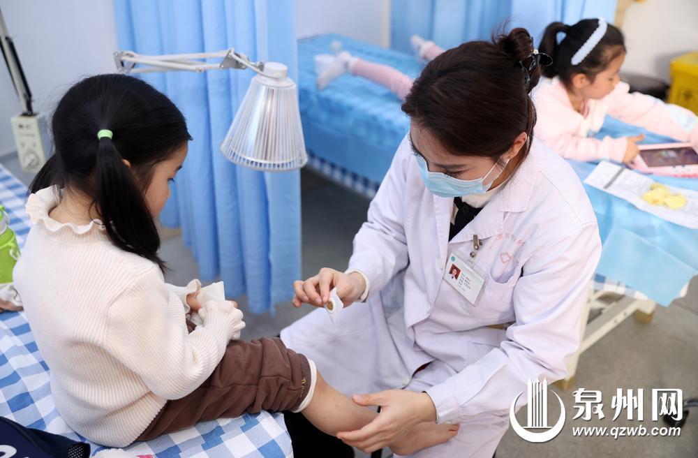 周末不少家长带孩子到医院进行综合调理 医院 辨证贴敷效果显著 “生长调理”门诊一号难求 在泉州医高专附属人民医院的预约平台上,儿童保健与康复科的当周号源周一便已约满。诊室里,记者看到有3名孩子正在接受推拿调理,护士现场调配生长贴。“将健脾补气药材打磨成粉,加黄酒调和,贴敷于中脘穴、涌泉穴、足三里,每次贴4至6小时即可。”该院小儿经络调理室负责人傅春红医生介绍,生长贴均为现场调配,为保证药材新鲜、取穴准确,目前暂不支持带回家贴敷。 在泉州市中医院儿科门诊治疗室,不少孩子正在接受中医外治调理脾胃、助生长,推拿、刮痧、艾灸、走罐、中药穴位贴敷等服务备受家长青睐,单次治疗时长约40分钟。该院医生同样表示,生长贴为现场调配,医师会根据患儿体质开具健脾消食、补肝肾等个性化处方。 “推拿、艾灸、扶阳助长等调理项目月均数百例,中药贴敷(消食贴、助长贴)月均千余贴,消腺贴、鼻炎贴、咳嗽贴、退热贴等临床应用也十分广泛。”詹俊杰说。