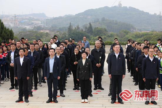 东星实验小学少先队代表登台献辞。东南网记者 陈诗婷 摄 伴随着《献花曲》,主办单位领导缓步上前整理花圈缎带。全体人员手持鲜花,拾阶而上依次敬献于纪念碑前,以花寄情、缅怀英烈。 各界代表缅怀革命先烈。东南网记者 陈诗婷 摄 “一想到那些和我们差不多大的孩子,在这个年纪就奔赴战场,甚至没能活下来,不只是感到敬佩,还很伤心。”献花环节,来自丰泽区东星实验小学的王籽唯同学眼含热泪,手中的鲜花递向纪念碑底座时,质朴的话语道出了少年真挚的追思。 仪式落幕后,“倾听一段红色故事”“书写一张寄语卡片”“开展一次志愿活动”等主题实践活动有序展开。孩子们拿起笔,在卡片上写下对先烈的告慰。 “革命烈士们,谢谢你们,是你们不畏牺牲、英勇战斗,才换来了我们今天幸福美好的生活,你们永远是我们心中最伟大的英雄。”丰泽区第五中心小学学生陈浩南说。 “我想对先烈们说,你们的牺牲是值得的。我们也会从身边做起,用实际行动为祖国贡献自己的一份力量。”东星实验小学学生聂曦说。 |