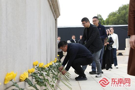 全体人员手持鲜花,拾阶而上,依次敬献于纪念碑前。东南网记者 陈诗婷 摄 “给先烈献花时内心满是震撼与感动,先烈们用热血换来了如今的幸福生活,他们就像一束光,指引着我前行。今后我一定会以英雄为榜样,好好学习,为祖国建设添砖加瓦。”第五中心小学学生庄诗涵说。