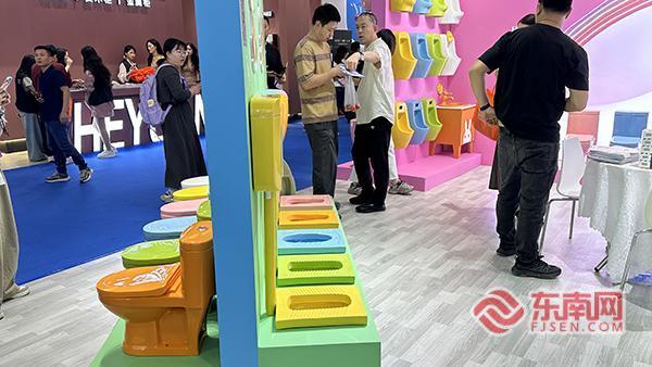“多巴胺”颜色产品成为展会的风景线。东南网记者 陈诗婷 摄 不只是“好看”,更要“好用”且“硬核”。在福建欧联厨卫的展位,一款聚焦女性健康需求的5A级智能马桶成为展馆内的“网红款”,全链路UV紫外线杀菌、内置式过滤滤芯、水花按摩等创新功能,让这款产品备受关注。“这款智能马桶的陶瓷本体和盖板模具都是我们自主开模,从坯体釉料到核心功能全是自主研发,每一项功能都有第三方检测报告支撑。”企业总经理游国标向记者详细介绍,花洒的水花按摩功能模拟雾化花洒效果,出水更柔和,适配女性特殊时期的清洁需求;内置过滤滤芯安装在减压阀后端,既避免长期高压导致滤壳破裂,又兼顾美观与可靠性,这些基于用户痛点的科技创新,让产品形成了独特的市场竞争力。 从自主研发的智能卫浴到AI赋能的跨境电商服务,科技的基因正深度植入南安卫浴的骨髓。展馆内,在跨境&电商服务区,行业讲师正在分享“AI+Agent”赋能卫浴企业出海的实操技巧,不少企业负责人认真记录、现场咨询;部分展商还通过AI智能匹配系统,快速对接采购商需求。 延伸服务 展会持续赋能产业 对于南安卫浴企业而言,这场展会不仅是展示产品的舞台,更是链接市场的枢纽。 “我们外贸占比仅5%,参加展会并非为短期签单。”游国标坦言,当下市场环境下,展会是重要的“客户入口”,通过展会让客商从展台走进工厂,深入了解企业的生产实力和研发能力,形成后续合作的契机,这种长期链接比一时的订单更重要。这一想法,道出了众多南安卫浴企业的心声。家门口的展会,让中小卫浴企业足不出户就能直面全国优质采购商,有效拓宽国内销售渠道、打响区域品牌知名度;而展会的海外采购商资源、跨境电商服务,更成为企业“扬帆出海”的重要跳板。