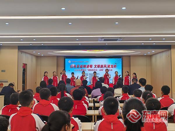 鲤城区第三中心小学带来诗朗诵。东南网记者 施远圻 摄 活动现场,传承的种子在更多细节中生根发芽。鲤城区第三中心小学的学生们用诗朗诵《清明,我们站在这里》表达对先烈的追思;一曲顺笛演奏《龙的传人》,旋律激昂,唤起在场每个人心中的家国情怀。这些质朴而真挚的环节,让红色教育不再遥远,也让清明节的传统文化在青少年手中得以延续和焕新。 民俗体验:舌尖上的闽南清明味 包润饼菜、做清明粿……当天,主办方还邀请现场的党员干部、青少年及志愿者一起动手,制作这些闽南清明时节特有的传统美食。揉面、包馅、卷饼,大家一边交流着儿时的节俗记忆,一边在烟火气中感受传统文化的温度。