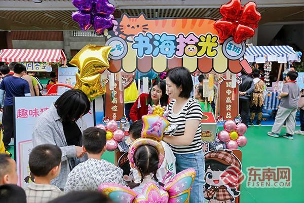 孩子们踊跃参加活动。学校 供图 “这是我们学校第一次做图书市集,每个摊位都融合师生们的巧思,比如我们班就是以‘在春天种一棵花,在心里种一本书’为主题去推荐《读读童谣和儿歌》这本书,效果还是很不错的,吸引不少学生来体验打卡。接下去的语文课,我们班还会组织同学们仿写、创编儿童诗。”该校一年级语文教师黄紫绿告诉记者。 从一年级的童谣创编,到高年级的经典演绎,这场图书市集早已不是一次简单的“摆摊分享”。它更像一粒种子,落在孩子们心里,慢慢长出对文字的亲近、对表达的热爱,而这一切背后的教育巧思,离不开学校层面的整体设计与推动。 “这样的图书市集不仅让我们看到孩子们的阅读积累以及阅读后的收获,通过不同班级、不同学生间的分享交流,还能激发更多孩子的阅读兴趣。”该校校长吴英哲告诉记者,这也只是世界读书日系列活动之一,学校还将通过设立亲子阅读日、师生共读日,开展草坪读书会、诗词竞技等活动,让书香从操场蔓延至家庭、从节日渗透进日常。 |