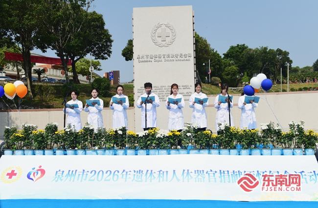 东南网4月9日讯(本网记者 林婕 通讯员 郭杰民 王文光)4月9日,生命·曙光——泉州市2026年遗体和人体器官捐献缅怀纪念活动举行。 活动现场。东南网记者 林婕 摄 本次活动由泉州市红十字会、市委文明办、市民政局、市卫健委、泉州医学高等专科学校联合主办,主办单位、各医院及医学院校、遗体和人体器官捐献者家属、联合OPO协调员、红十字志愿者等各界代表齐聚,共同缅怀遗体和人体器官捐献者,致敬生命大爱,弘扬“人道、博爱、奉献”的红十字精神。 医学生代表向“大体老师”庄严宣誓。东南网记者 林婕 摄 上午9时,现场举行“沐手敬书 刺桐缅怀”签名仪式,参与者以庄重笔墨寄托追思。9时30分,缅怀仪式正式开始,现场肃穆有序。缅怀朗诵深情致敬每一位无私奉献的遗体和人体器官捐献者;器官捐献协调员代表陈丁榕现场分享,讲述一线守护生命的坚守与感动;医学生代表向“大体老师”庄严宣誓,红十字志愿者礼兵有序敬献花篮;全体人员向捐献者默哀,医学生代表合唱《爱的奉献》,众人依次献上鲜花、放飞追思气球,以庄重而温情的方式,寄托对捐献者的深切思念与崇高敬意。 |