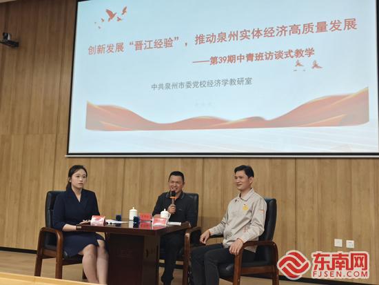 教学现场。刘炳南 供图 东南网4月10日讯(本网记者 陈诗婷 通讯员 刘炳南)近日,泉州市委党校第39期中青班开展访谈式教学,邀请金鹿集团柯美辉、国网泉州供电公司郭诗颖两位嘉宾,围绕“创新发展‘晋江经验’,推动泉州实体经济高质量发展”主题分享交流。 教学中,柯美辉以“‘晋江经验’引鹿前行”为题,从“党建引领方向、实业根深叶茂、创新赋能升级”三个方面讲述了企业深耕实业、勇闯市场的发展历程;郭诗颖以“他们拼市场 我们拼光明”为主题,围绕“爱拼是服务发展的情怀、善拼是改革攻坚的智慧”,分享电力部门服务企业、保障发展的实践举措。学员们认真聆听,围绕党建引领、企业转型、便民服务、人才就业、营商环境、要素保障等问题积极提问,与嘉宾深入探讨交流。 此次教学让学员们深刻体会到,“晋江经验”是泉州实体经济发展的宝贵财富。大家表示,将立足岗位汲取经验,主动服务企业发展,为传承创新“晋江经验”、推动泉州实体经济高质量发展贡献力量。 |