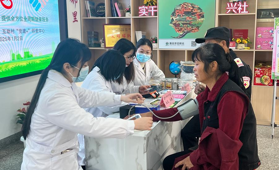 活动现场。汪伟阳 供图 党建铸魂,筑牢基层治理根基。互助村充分发挥村党总支牵头统领作用,建强组织体系,完善党员志愿服务、议事协商、网格管理三项机制,推动全村60余名党员亮身份、践承诺、作表率。深挖本土乡贤资源,联动镇直单位、公益组织成立党建公益联盟,吸纳各类共建单位12家、志愿者80余人,构建起共建共治共享新格局。邻里中心每年常态化开展主题党日、政策宣讲、红色教育等活动200余场次,以党建引领乡风文明,凝聚起乡村发展的强大合力。 阵地提质,打造便民服务枢纽。按照标准化建设要求,邻里中心优化功能布局,打造儿童乐园、邻里快剪、红娘牵线、家长驿站、长者食堂、中医理疗等优质便民项目11个,实现一站式便民服务。推动社保、医保、民政等20余项高频政务事项下沉办理,让村民真正实现“小事不出村、大事少跑腿”。中心配套建设文体广场、健身路径等休闲空间,日均接待村民100余人次,成为村民议事、活动、休闲的公共客厅。