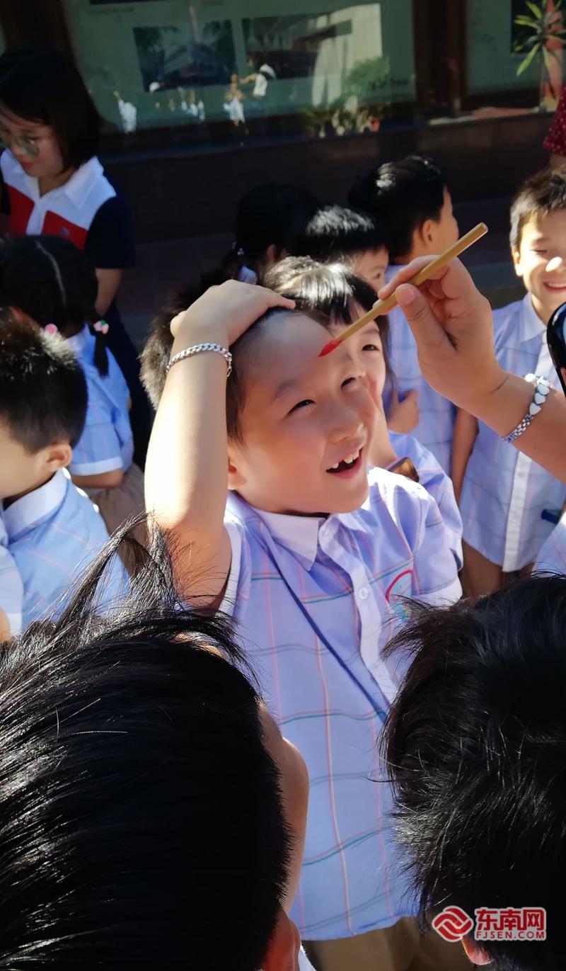 养正中心小学举行开笔礼,为孩子点朱砂。学校 供图