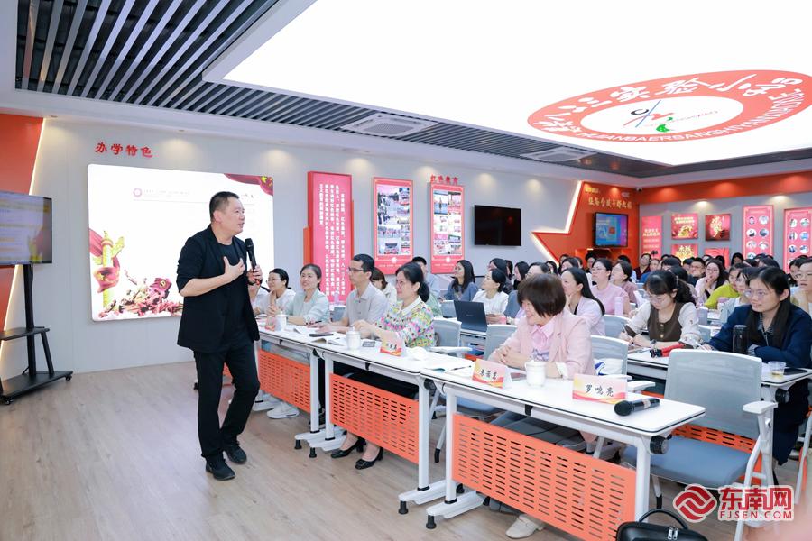 开幕式后,专题分享与专家报告相继展开,并同步与宁夏红寺堡区弘德希望小学线上联研。惠安县八二三实验小学副校长杜宝治以“1336”校本教研创新实践为核心作专题分享,系统阐释学校以文化立校、以评价赋能、以教研提质的实施路径,完整展现校本教研从顶层设计到落地推进的全流程体系。三明教育学院专家林启福以三明学院附属小学“福泽教育”为案例,结合校本课程建设与教研改革实践作专题报告,为基层学校开展校本化、特色化教研提供理论指引与实操借鉴。