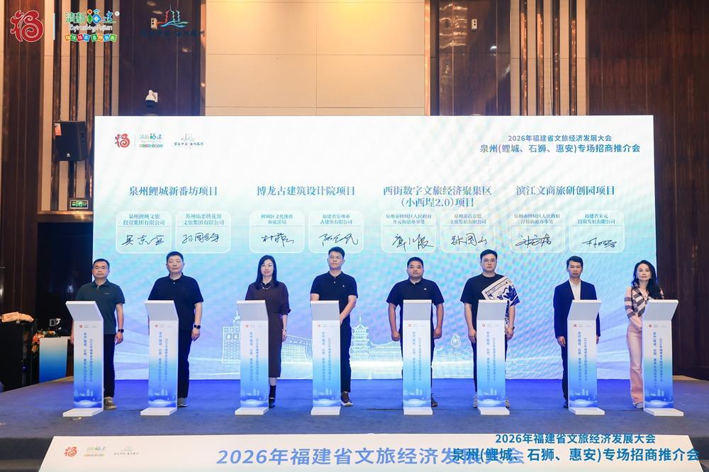 17 日,由泉州市文化广电和旅游局、泉州市发展和改革委员会联合泉州市文旅集团、鲤城区、石狮市、惠安县人民政府共同主办的泉州(鲤城、石狮、惠安)文旅专场招商推介会在漳州市成功举行。活动紧扣 2026 年福建省文旅经济发展大会契机,现场签约 13 个重点项目,为 “宋元中国・海丝泉州” 城市品牌建设再添新动力。