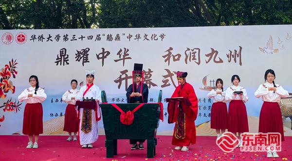 “觞鼎”中华文化节开幕式上的祭鼎仪式。东南网记者 谢玉妹 摄 东南网4月19日讯(本网记者 谢玉妹)4月19日下午,华侨大学第三十四届“觞鼎”中华文化节在泉州校区举行。“侨见国学”中华文化海外传播项目同时揭牌启动。 本届文化节以“鼎耀中华,和润九州”为主题,以“和”为轴,设置了汉字文化大赛暨港澳台学生中华文化知识大赛、“侨见国学”中华文化海外传播和“星烛互耀”敬老育才温暖互促项目、“‘智’桐新声”AI 创意写作大赛等系列活动。 开幕式以“鼎启元和”“声诵和畅”“游园沐和”三大篇章为主线:在祭鼎仪式上,学生代表以诗文吟诵、传统礼仪致敬文脉,以鼎为信、以觞寄情,彰显文化传承的厚重与庄严;“声诵和畅”荟萃古典舞蹈、经典朗诵、南音雅乐、合唱展演等文艺节目;游园现场则设置了皮影承艺、和韵诗笺、文趣智造等文化体验摊点活动,吸引师生感受济和四海、文和赓续、平和康健、睦和同心的华园风情。 |