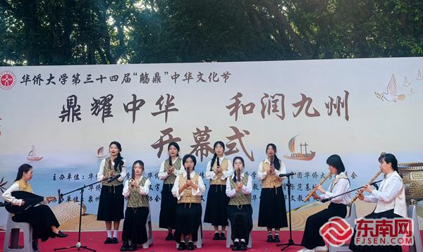 南音《风打梨》表演。东南网记者 谢玉妹 摄 在孟子后裔第七十五代传人孟小红看来,觞代表谦和礼敬,鼎代表诚信担当,觞鼎承载的正是中华礼乐文明的精髓,而孟子的精神,恰恰是觞鼎之魂最深刻的体现。孟子有言:“仁者爱人,爱人者人恒爱之。敬人者人恒敬之。”孟小红认为,华侨大学联通中外,来自不同文化背景的学生们齐聚一起,相互理解、相互尊重、相互包容,就是“仁”在当代最鲜活的写照。 值得一提的是,著名书法家孟繁禧还赠送了书法作品《觞鼎传薪》,为文化节献上墨香礼赞与美好祈愿。 作为校园文化活动品牌,华侨大学“觞鼎”中华文化节已成功举办了三十四届。活动积极引领青年学子在回望根脉中汲取力量,于砥砺奋进中勇立时代潮头,让中华文脉在守正创新中薪火相传、焕发勃勃生机。 |