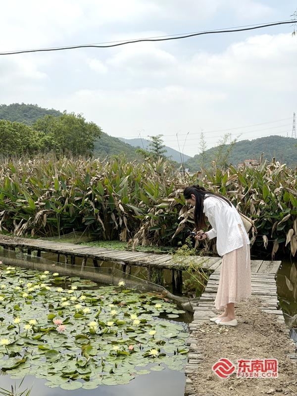 游客前来和园九品莲花基地拍照打卡。东南网见习记者 薛逸群 摄