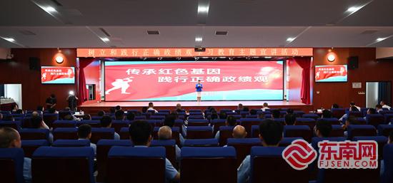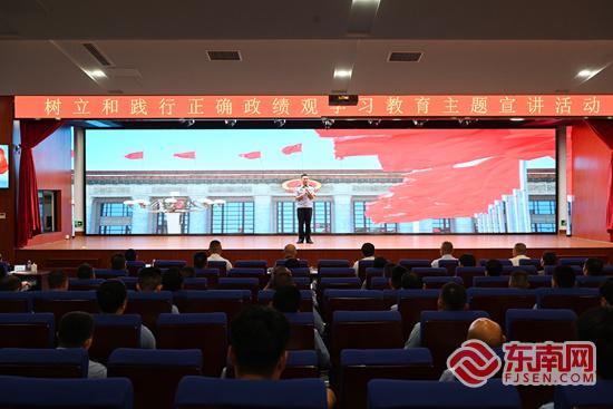 东南网4月23日讯(本网记者 吴雅艺 通讯员 郑丽云 谢奇 蔡昱晟)政绩为谁而树?功成归于何处?这是一道需要终身作答的课题。4月22日,由泉州市委市直机关工委、泉州市委党史和地方志研究室、福建省洛江监狱、洛江区委组织部、洛江区委党史和地方志研究室联合举办的“传承红色基因 践行正确政绩观”主题宣讲活动在洛江监狱举行。主办单位有关负责同志及党员、民警代表共一百余人参加活动。