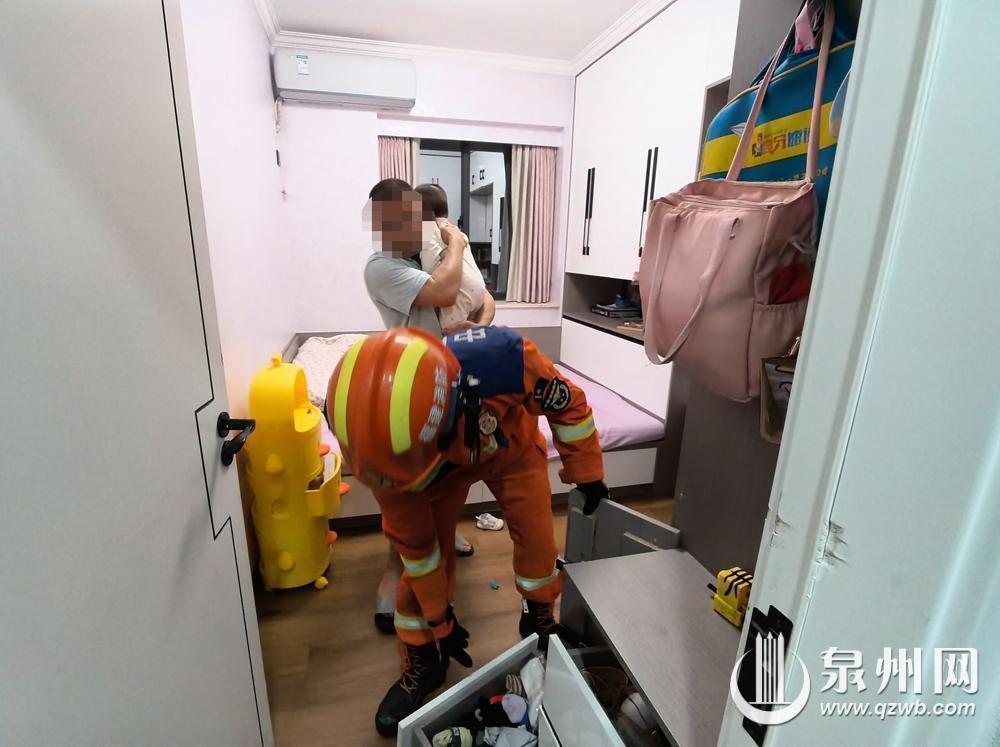 早报讯(融媒体记者林志安 通讯员张伟斌 文/图)4月23日晚9时许,惠安县螺阳镇禹州剑桥学苑小区内,一个不满周岁的幼童独自在房间内玩耍时意外被困,家人多次尝试开门无果后紧急拨打119求助。惠安县世纪大道消防救援站迅速出动赶赴现场,将幼童安全救出。
