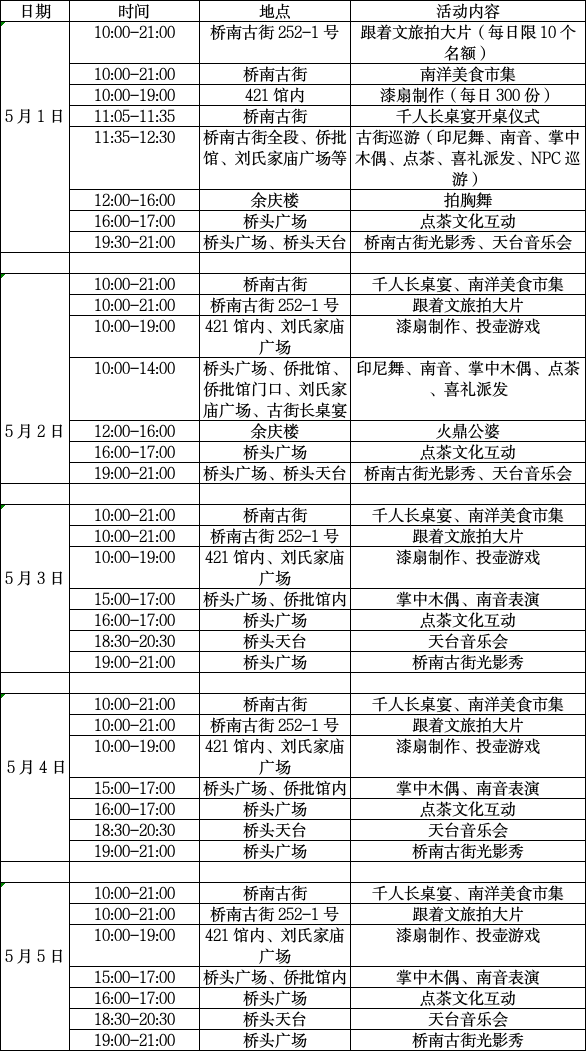 同时,聚焦万安街道桥南古街及周边,串联古街市集、文创潮玩、侨风体验等特色内容,与世遗风光相形成美食宴席+人文游览、日间休闲+夜游赏景的组合玩法。每一场活动都成为“拼”出来的惊喜!