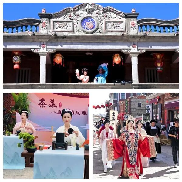 观看火鼎公婆和点茶文化互动,体验漆扇制作与投壶游戏,还有“实时云游”低空文旅体验项目哦。
