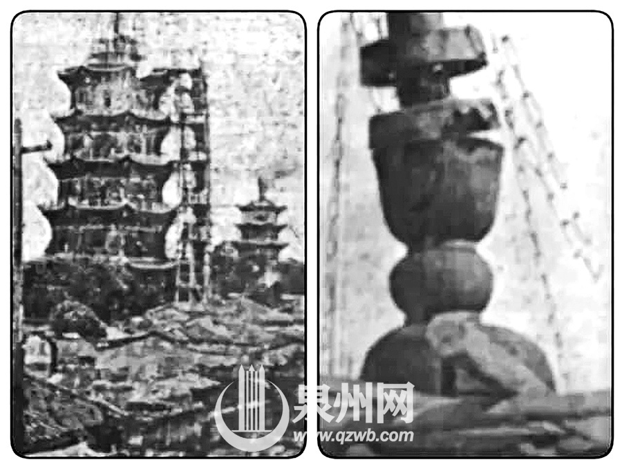1927年修缮地震时震歪的东塔塔尖 美国人的震惊 27岁的Ricky是美国人,早先在美国认识了一位晋江朋友,因为喜欢中国传统文化,听闻了泉州的深厚文化底蕴后,3年前他决定来泉州定居。Ricky告诉记者,去年8月,他成了培元中学拍摄的微电影《音乐活化石》中的原型,而那次的录制,就是在开元寺。他还记得第一次看到东西塔的情景:“太令人震惊了!”震撼于东西塔的雄伟,他常常向外国友人推荐。“只要有朋友来泉州,都会带他们去逛逛。” @微声音 东西塔见证我的爱情 Mr@范:说起东西塔,是泉州留给我最美的一个景!2013年孤身一人来到泉州念大学,在电视上看过东西塔后,一个周末我独自一人坐公交到了开元寺。在东西塔台阶边遇到了同班女生,她脚下一滑,我就上去问她没事吧!后来也就奠定了在班上和她关系最好的基础,直到毕业,我们在一起四年了!感谢东西塔,见证了我们爱情的开始! 塔下的花生汤 永茂:小时候家长曾带我进去玩,大门旁边的两尊神像使人有种不寒而栗的感觉,印象最深的是上世纪70年代初期,百货公司在那里设立商场,饮服公司在那里设立小吃店,记得有一次我逛完商场还吃了一碗花生汤。 |