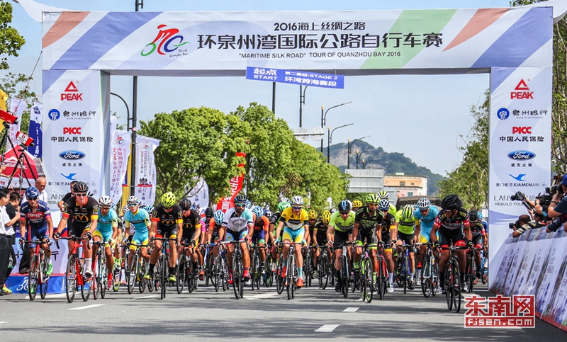 2016海上丝绸之路环泉州湾国际公路自行车赛14日至16日举行,来自世界各地的15支专业队伍、88名选手将在如画的山水间角逐,体验速度与激情。赛事以“绿色、开放、共享、发展”为主题,系全球唯一以“海丝”为主题的骑行活动。赛会历时3天,途经鲤城、丰泽、晋江、石狮、惠安、永春、德化、台商投资区,总里程约337公里。