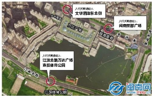 3座天桥大体位置图(长旺 制图) 东南网4月11日讯(海峡都市报记者 董加固 陈邵珣 田米 文/图)泉州市区宝洲街万达段的交通拥堵缓解,有望获得有效突破。昨日,海都记者获悉,宝洲万达周边,将架设3座人行天桥:一处在江滨北路万达广场连接体育公园,一处在闽南茶都广场,一处在文华酒店东北侧,其中,宝洲街上的两座人行天桥于年底完成建设。 宝洲街万达段地理位置特殊,承接着中心市区东、西两大城区的枢纽,承载着泉州浦西万达广场、领SHOW天地两大核心商圈的交通出行。这一公里长的交通拥堵问题,牵动着各方的心。本报从去年12月26日起,给予了跨年度系列报道,引起泉州市长康涛的重视和肯定,泉州市政府还专门组织各方召开研讨会,协调研究这一民生热点问题。海都报的报道也引起不少泉州市人大代表、市政协委员的关注,并把相关建议、意见带入今年的泉州两会。 两座天桥今年建好,一座天桥明年建好 泉州市人大代表王伟明,在今年泉州两会提交《关于统筹解决市区宝洲街万达段交通拥堵的建议》,成为市十六届人大一次会议第1304号建议。近期,泉州市市政公用事业管理局及时作出函复。 海都记者从这份函复获知,宝洲街万达段将建两处人行天桥,一处选址定于闽南茶都广场,由原业主泉州市市政工程管理处继续组织实施,市财政安排建设资金,目前已基本完成项目前期工作,将于近期组织招投标工作;另一处选址定于文华酒店东北侧(地下车库坡道旁),万达公司承诺愿意出资建设。两处天桥均于2017年底前完成建设。 不仅如此,江滨北路万达广场连接体育公园,也将架设人行天桥。由泉秀街道办事处于5月份前完成江滨体育公园用地回收工作,并移交现建设单位泉州市滨江北路景观整治提升建设指挥部建设,于2018年底前完成天桥建设。 _ueditor_page_break_tag_