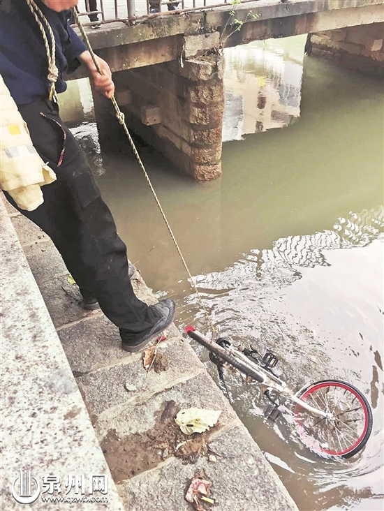 共享单车竟被扔内沟河 疑是有人恶意破坏
