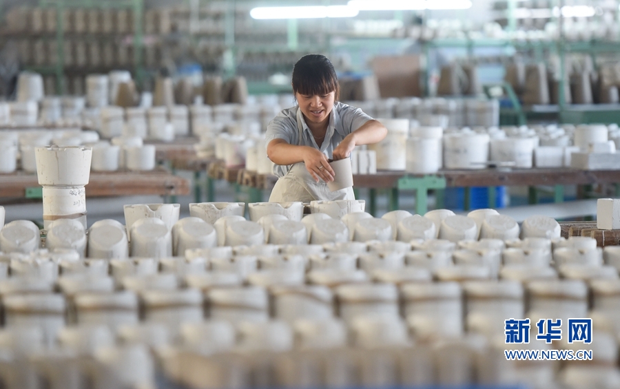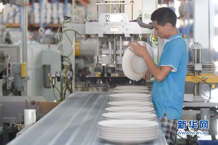 7月12日,工人在福建省德化县一家陶瓷企业加工陶瓷。 近年来,福建省德化县大力推进出口陶瓷质量安全示范区建设,联合福建出入境检验检疫部门,培育技术、品牌、质量等陶瓷出口核心竞争优势,被国家质检总局授予国家级“出口陶瓷质量安全示范区”称号,陶瓷出口保持增长态势。 据统计,福建省德化县现有陶瓷企业2600多家,陶瓷年产值近200亿元人民币。 新华社记者 宋为伟 摄 _ueditor_page_break_tag_7月12日,在福建省德化县一家陶瓷企业样品展示厅,两名顾客在了解制作成卡通形象的陶瓷制品。 近年来,福建省德化县大力推进出口陶瓷质量安全示范区建设,联合福建出入境检验检疫部门,培育技术、品牌、质量等陶瓷出口核心竞争优势,被国家质检总局授予国家级“出口陶瓷质量安全示范区”称号,陶瓷出口保持增长态势。 据统计,福建省德化县现有陶瓷企业2600多家,陶瓷年产值近200亿元人民币。 新华社记者 宋为伟 摄 _ueditor_page_break_tag_7月12日,在福建省德化县一家陶瓷企业,工人在抽检自动化生产线上的陶瓷半成品。 近年来,福建省德化县大力推进出口陶瓷质量安全示范区建设,联合福建出入境检验检疫部门,培育技术、品牌、质量等陶瓷出口核心竞争优势,被国家质检总局授予国家级“出口陶瓷质量安全示范区”称号,陶瓷出口保持增长态势。 据统计,福建省德化县现有陶瓷企业2600多家,陶瓷年产值近200亿元人民币。 新华社记者 宋为伟 摄 _ueditor_page_break_tag_7月12日,在福建省德化县一家陶瓷企业,工人在抽检自动化生产线上的陶瓷半成品。 近年来,福建省德化县大力推进出口陶瓷质量安全示范区建设,联合福建出入境检验检疫部门,培育技术、品牌、质量等陶瓷出口核心竞争优势,被国家质检总局授予国家级“出口陶瓷质量安全示范区”称号,陶瓷出口保持增长态势。 据统计,福建省德化县现有陶瓷企业2600多家,陶瓷年产值近200亿元人民币。 新华社记者 宋为伟 摄 _ueditor_page_break_tag_