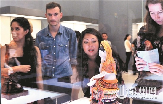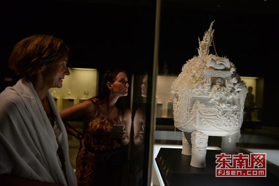 外国友人参观展览 东南网8月27日讯(通讯员 李宏图 本网记者 潘贤利) “太幸运了,好像就是特意为这个展览而来的。”“丝路使者‘中国白’再出发”德化白瓷艺术展在中国国家博物馆展出期间,来自北京的游客刘兰英带着香港朋友洪秀仪一行观看展览,对“中国白”不禁连声赞叹。 “据不完全统计,每天超5000人次参观展览,特别是开幕式当天高达上万人次,现场非常火爆。”德化县白瓷艺术展的工作人员许金泽介绍,此次展览分为“云端高淼”和“人间万象”两个区域和主题,在国家博物馆北2和北3两个展厅共展出106位德化陶瓷艺术家181件作品。展出时间从8月20日-9月1日,至8月26日,展览刚好一周,每天国内外游客云集,反响很好,增加了游客对泉州、德化的了解,不少人还产生了购买、收藏德化白瓷的意愿。 天天参观拍照 一件作品拍了500多张 “德化人真是太聪明了,很有智慧!”8月23日起,北京观众游客刘女士天天进场参观,把每件作品拍了个遍。 “就这三面千手观音,我就拍了五百多张。”刘女士说,一进场就被震撼了,没想到这作品还是出自一位叫邱双炯86岁高龄的中国陶瓷艺术大师之手。她说,作品那么大,那么精致,那么传神,真是让人大开眼界。 “艺术之美是永恒的,很多人看展览只是‘走马观花’或是‘到此一游’,而我不一样,我觉得拍的是有生命的艺术品。”刘女士说,她自己不但爱好文学,也是一名陶瓷艺术爱好者,在展馆欣赏作品的美,也是在和作品对话,心情非常愉快。 “每天只拍七八个展柜的作品,一点细节都不放过,直到拍完拍满意了为止。”刘女士说。 _ueditor_page_break_tag_游客大赞德化 家中藏有不少德化瓷 “我太喜欢德化了,从新闻联播看到有德化白瓷艺术展在国家博物馆展览,我们就慕名而来了。”8月25日,北京72岁游客王德华和老伴一早坐了一个多钟头的公交车前来观看展览,显得有些激动。 原来,王老也是个德化白瓷迷。他介绍说,自己家里藏了不少德化白瓷艺术品,有观音、弥勒等传统雕塑作品,也有一些小件饰物等,很多是从1997年在“德化名瓷展览会”上购买的。“当时,一看就喜欢上了,不顾家人的反对,狠下心就买了。” “没想到,二十年后,在这又看到了这么多的德化白瓷艺术品。”王老说着,从包里拿出当年的参观券,还有自己拍的自家收藏的作品图,一一叫出这些作品的作者,有几位已是省级或国家级大师了,如苏珠庄、柯宏荣、陈桂玉夫妇等。 王老介绍,自己经常从网上看德化新闻,发现德化变化很大,陶瓷发展也很快,已是“世界陶瓷之都”了,扬名海内外。他说,有生之年一定到德化看看。 “德化这个白瓷艺术展办得好,以后要多来北京等全国各地办展,可以提高德化白瓷的知名度。”王老还提了个很好的建议。 整体水平很高 细节可再完善 “太厉害了,这‘纱’做得跟真的似的。”8月24日,北京游客李飒在欣赏红楼梦“十二金钗”雕塑作品时,不禁感叹作者的创作技艺精湛,可谓完美绝伦。 “本次展览也涌现出一批新秀,而且很优秀,创作水平也很高,这是我没想到的。”李飒说,像李锦峰、林似钦、黄永星等年轻一代的创作者,功力不一般,作品很有个性,是德化陶瓷艺术创作的新生力量。 “整体水平都很高,真的让人诧异,让人意想不到。”李飒说,可见德化这地方是一个艺术创作的乐土,但在细节上可做得更完善些,相信德化陶瓷艺术之路会走得更宽、更远。 |