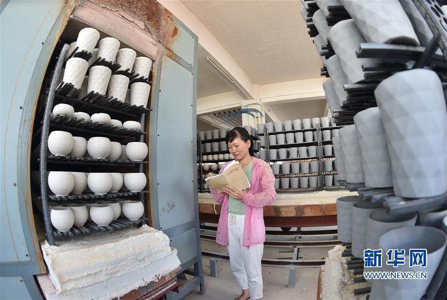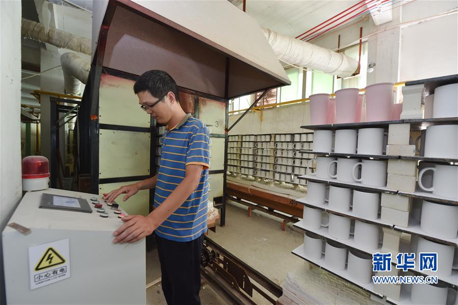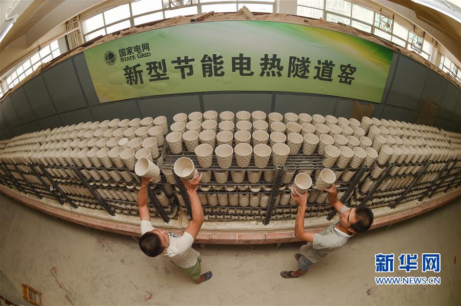 9月26日,在福建省泉州市德化县中昱陶瓷厂,工人在新型节能电热隧道窑前对一批准备出口的陶瓷花盆进行登记。该企业与当地供电公司共同研究推出了采用新型电热窑炉发热元件的电窑炉,可节约生产成本约26%。 福建省泉州市德化县是我国著名的陶瓷生产基地,多年来,该县大力推广陶瓷循环化改造,通过国家电网能源替代项目,支持企业以电代柴对窑炉进行技术改造,在转型升级、降低损耗的同时走上绿色发展之路。据统计,截至今年8月底,该县70%的陶瓷企业已经实现以电烧瓷,累计减少水土流失面积5万亩,减少二氧化碳排放约10万吨,被列入国家循环经济典型模式示范县。 新华社记者宋为伟摄 _ueditor_page_break_tag_9月26日,在福建省泉州市德化县顺美陶瓷厂,工作人员在电热隧道窑前操控流水线。。新华社记者宋为伟摄 _ueditor_page_break_tag_9月26日,在福建省泉州市德化县顺美陶瓷厂,工人准备将一批马克杯放入电热隧道窑流水线。新华社记者宋为伟摄 _ueditor_page_break_tag_