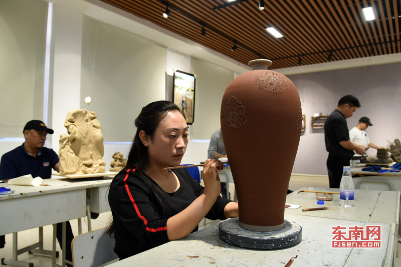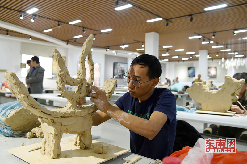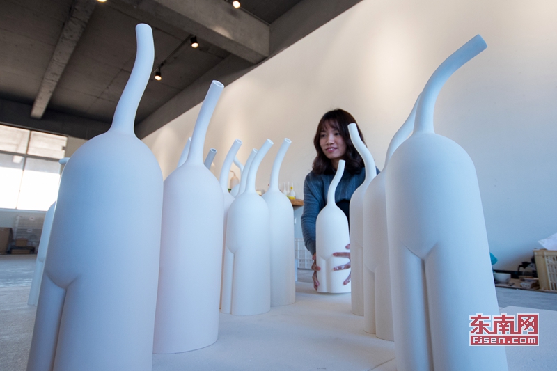 广州美术学院研究生刘玉珍展示在德化创作的作品。 |