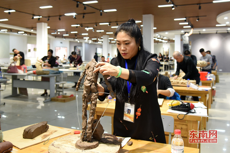 选手在用瓷土塑型 |
