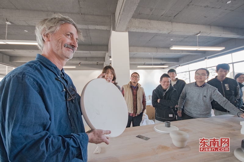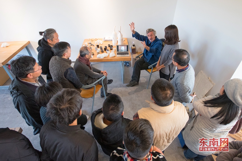 瑞土日内瓦大学陶艺系教授Philippe Barde(菲利普· 巴尔德)向德化青年陶瓷艺术家展示法国餐盘。 东南网12月22日讯(本网记者 潘贤利 通讯员 李宏图 许华森)12月20日,来自瑞土、法国、韩国的艺术家与德化青年陶瓷艺术家、泉州工艺美术职业学院师生进行了交流研讨。 近年来,德化建成了全国高端陶瓷创作平台,成为陶瓷艺术历史和先进科技工艺文化艺术的交流地、国际陶瓷人才和艺术家的汇聚地,吸引了世界各地的陶艺大师来驻地创作,并促进与“海丝”沿线国家的文化交流与合作,进一步打响“世界陶瓷之都”品牌。 _ueditor_page_break_tag_瑞土日内瓦大学陶艺系教授Philippe Barde(菲利普· 巴尔德)与德化青年陶瓷艺术家交流。 _ueditor_page_break_tag_