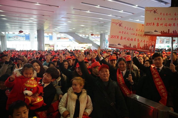 【关注春运】 包动车幸福返乡 留泉州畅快过年 东南网2月9日讯(海峡都市报记者 陈建辉 黄谨 曾小琴 通讯员 黄丽 诗通 永江 文/图)过了小年,不说点幸福的“年事儿”,简直赶不上话了。 年怎么过?回家当然是绝大多数人的不二选择,返乡、春运等词汇,都诞生于“过年回家”的大潮中。在泉务工人员的返乡路有情有暖。自2005年起,泉州市委、市政府便在全国首次发起“包火车返乡”活动,后来发展为包火车、包汽车、包飞机“三包”平安返乡活动。 坚守岗位、脱不开身、回不了家的人也不少。没有发小、亲友和乡亲,在泉州怎么过个暖心年?不如趁着春节人少,逛逛平日里人潮拥挤的各大景区?听说还能免费逛! 包动车 红火回家过大年 昨天早晨7时许,泉州动车站来了一群“小红帽”。 原来是1100多人包了一趟动车回家过年,这已是泉州连续14年开专列送民工返乡过年了,也是第5年包动车,均是全国首创。 欢送仪式由泉州市总工会、市交通委、中铁南昌局漳州车务段等主办。“红礼包、红帽子、红春联福袋。天气冷,心里暖!”拿到3个大礼包后,四川人杨军乐呵呵地带着妻子和两个儿子进站候车。杨军来泉州工作十六七年了,12岁的大儿子和刚满周岁的小儿子都在泉州出生,老婆也是泉州人,泉州是第二故乡。过去回家,得搭三四十个小时的大巴,如今动车直达只要14个小时到重庆北,再转乘1个小时班车就到达州老家了。 泉州动车站吴书记介绍,专列D2376次(厦门—重庆北)的1200多张车票全在泉州,主要是前往汉口、重庆北的,重联运行为16节车厢,全部留给在泉务工人员,让他们能顺利返乡过年。今天的D2376次动车还有640多张车票留给了在泉务工人员。 在过去连续14年的泉州关爱外来务工人员“平安返乡”爱心慰问活动中,中国移动泉州分公司是最早参与者之一,提供了从最初的保险和话费优惠,到现在涵盖安全、返乡、就业、子女教育、人文关怀等全方位服务,截至目前,直接受惠外来务工人员约300万人次。 _ueditor_page_break_tag_