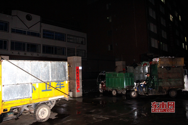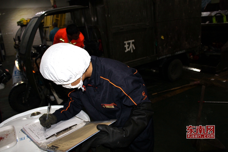 4月1日凌晨4:00,女环卫工人李斯斯早早地起来,准备一家人的早餐,她五点前须抵达江南小型垃圾转运站,开始一天的垃圾处理工作。东南网记者 薛逸群 摄 东南网4月3日报道(本网记者 薛逸群/文图 陈培源/视频)和原来想象的静谧安宁不同,凌晨的泉州就已响起大扫帚擦过地面的沙沙声。 4月1日凌晨,泉州市区下着小雨,刮了一夜的风终于渐渐减弱,女环卫工人李斯斯也开始了一天的工作。据了解,泉州市区有环卫工人5000余名,每日处理垃圾量1400吨以上,李斯斯所处的江南小型垃圾转运站一天至少需要处理80吨生活垃圾。 “我的工作就是转运垃圾,每天早上5点开门,换上工作服,开始协助其他环卫工人将垃圾转移到运输车上,做好登记,清洁运输车辆,清洁转运站。工作虽然挺累的,但是我们辛苦付出,能够让这座城市变得更加美丽,我们也很高兴,也很愿意贡献出我们的力量。”李斯斯说。 杨秀清也是名“女将”,她一身工衣,戴着厚厚夹层手套和帽子,在飞舞的尘土和满地的生活垃圾中开始了清洁工作。她和搭档每天凌晨四点开始上班,六点左右清扫完毕后回家给家人做饭。她与搭档所负责的路段全天都需要保证清洁,她已经在这个岗位上服务了10年。 当问到累不累,有没有想过换一份工作时,她提高了声音:“每天要打扫这么多垃圾,是挺累的,但把路扫干净了还是很有成就感的。” 凌晨的街道有点冷清安静又忙碌,这些环卫工人们就是城市的美容师。正因为有他们的付出,让这个城市变得越来越好。 _ueditor_page_break_tag_4月1日凌晨4:15,李斯斯给家里人做好饭后简单地吃完早餐。饭菜很清淡,白粥与几个小菜。东南网记者 薛逸群 摄 _ueditor_page_break_tag_4月1日凌晨4:50,江南小型垃圾转运站已有多辆载满生活垃圾的环卫车等待进场。这个小型转运场每日凌晨5点运作至晚上10点,日处理垃圾80余吨。东南网记者 薛逸群 摄 _ueditor_page_break_tag_4月1日凌晨5:00,满载垃圾的环卫车驶入江南小型垃圾转运站。东南网记者 薛逸群 摄 _ueditor_page_break_tag_4月1日凌晨5:00,李斯斯的工作服裹得严实,只露出一双眼睛。工作中的异常气味非常大,口罩都必须加厚,处理垃圾的时候经常有玻璃碎片等一些尖锐物品,工作手套要加厚。天气冷的时候感觉不到,但夏天的时候工作完常常像洗了个澡。东南网记者 薛逸群 摄 _ueditor_page_break_tag_4月1日凌晨5:10,李斯斯操作仪器,将环卫车倾倒出来的垃圾收纳进大型垃圾柜。东南网记者 薛逸群 摄 _ueditor_page_break_tag_4月1日凌晨5:10,李斯斯正在将环卫车倾倒出来的垃圾收纳进大型垃圾柜。东南网记者 陈培源 摄 _ueditor_page_break_tag_4月1日凌晨5:10,大型环卫车辆将中转站大型垃圾柜运送离开,进行填埋焚烧。东南网记者 薛逸群 摄 _ueditor_page_break_tag_4月1日凌晨5:15,李斯斯将垃圾柜离开以及进入转运站时间登记在本子上方便查找。东南网记者 薛逸群 摄 _ueditor_page_break_tag_4月1日凌晨5:20,李斯斯清洗大型垃圾箱。垃圾从环卫车倾倒出来以后,常常会有很多残渣废水溢出,需要及时频繁地清洗。东南网记者 薛逸群 摄 _ueditor_page_break_tag_4月1日凌晨5:30,顺着大扫帚擦过地面的沙沙声,女环卫工人杨秀清正在清扫浮桥街道的生活垃圾。“每天要打扫这么多垃圾是挺累的,但把路扫干净了还是很有成就感的。”东南网记者 薛逸群 摄 _ueditor_page_break_tag_4月1日凌晨5:40,这是一对环卫工夫妻,丈夫李愽厚与妻子陈培琴从事环卫工作十几个年头。凌晨三点多开始到达所负责的路段清扫,一个扫机动车道一个扫非机动车道,握着长长的扫把在道路上同时行进,已然成为一种生活的默契。东南网记者 薛逸群 摄 _ueditor_page_break_tag_