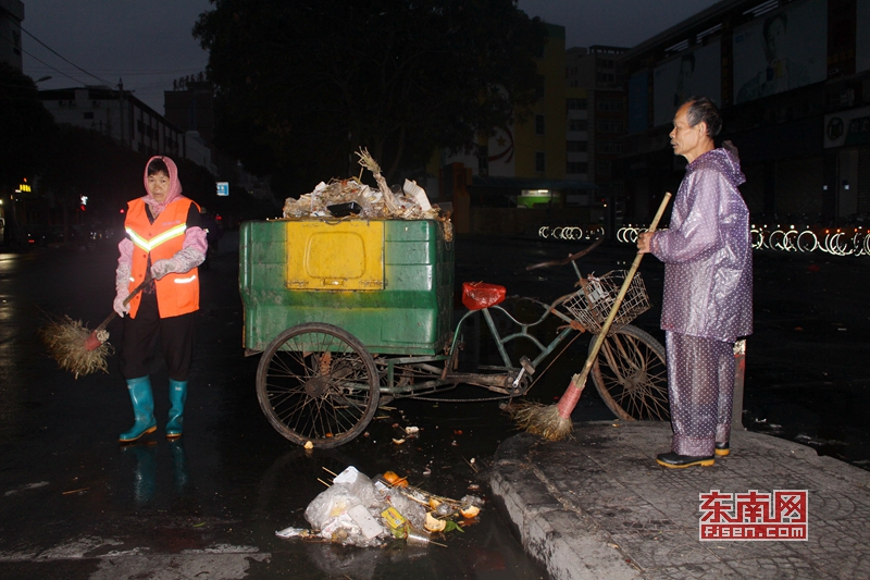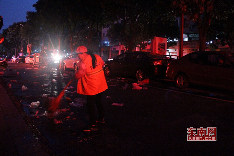 4月1日清晨6:00,天已经蒙蒙亮,经过一夜的大风,路面一片狼藉。李愽厚说,通常我和妻子都会在凌晨三点出来打扫路面,这个时候路面车辆和行人都比较少,工作好进行,六点基本就结束路面清扫。东南网记者 薛逸群 摄 |