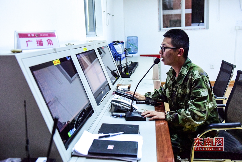 在中队的广播角,两位后勤人员24小时轮岗,确保信息第一时间传达到位。东南网记者 林婕 摄 |