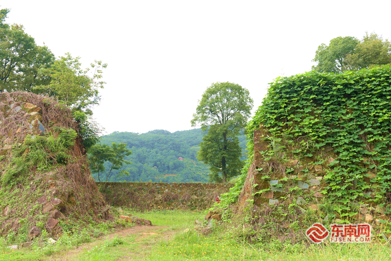 残缺的古寨城墙由卵石与黏土砌筑而成,藤蔓爬满了墙体。东南网记者 林婕 摄 _ueditor_page_break_tag_