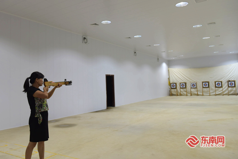 钟富治向记者展示她的精湛射术。东南网记者 林婕 摄 _ueditor_page_break_tag_
