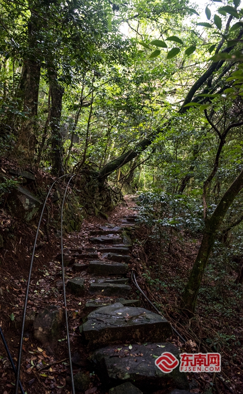 行走在茶源古道上,石阶上布满青苔,山间弥散着水汽。东南网记者 林婕 摄 _ueditor_page_break_tag_