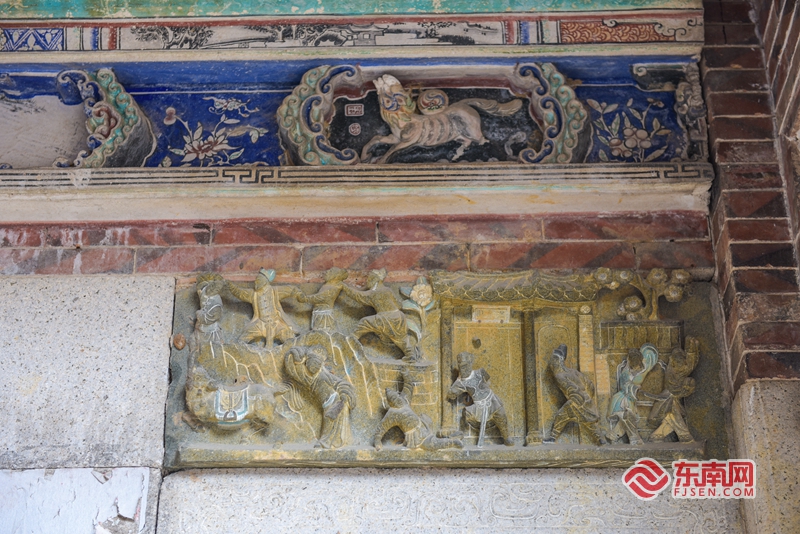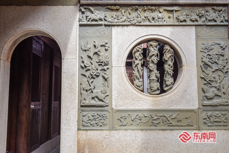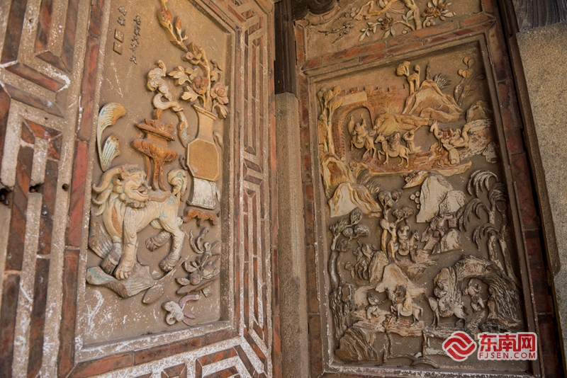 蔡氏古民居内,雕梁画栋,门前墙砖浮雕,立体感强。东南网记者 林婕 摄 _ueditor_page_break_tag_