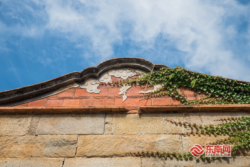 藤蔓爬上红砖瓦,配上蓝天,风景如画。东南网记者 林婕 摄 _ueditor_page_break_tag_