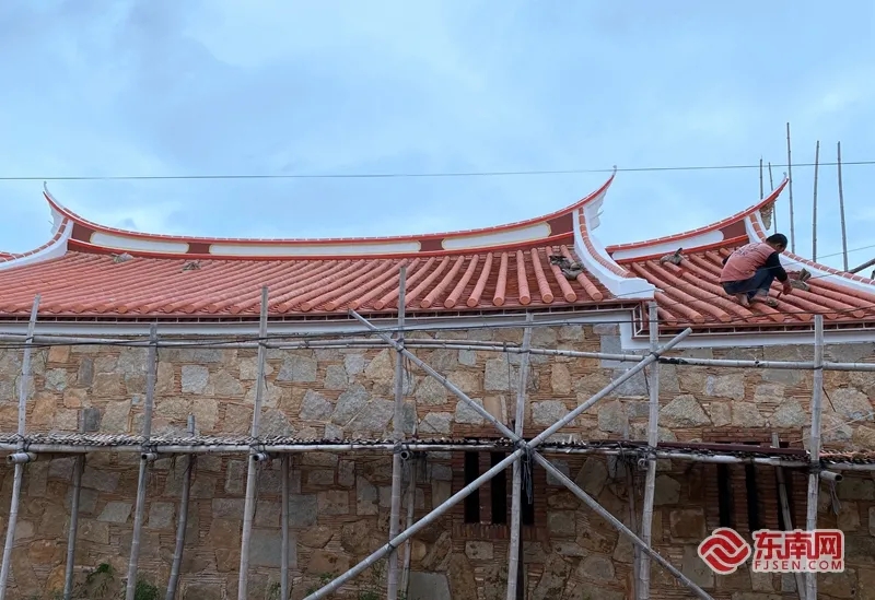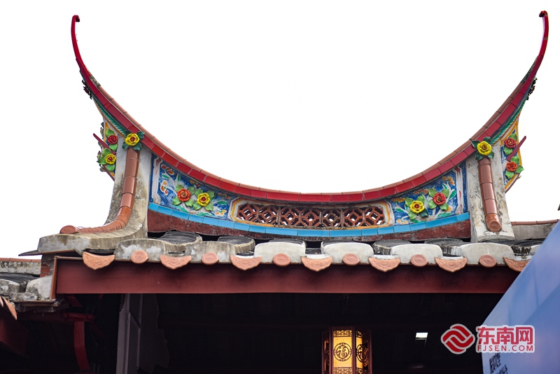 出砖入石燕尾脊是“闽南红”建筑的主要特色之一。东南网记者 林杰 摄 _ueditor_page_break_tag_