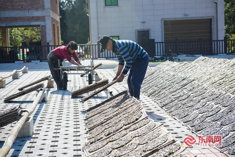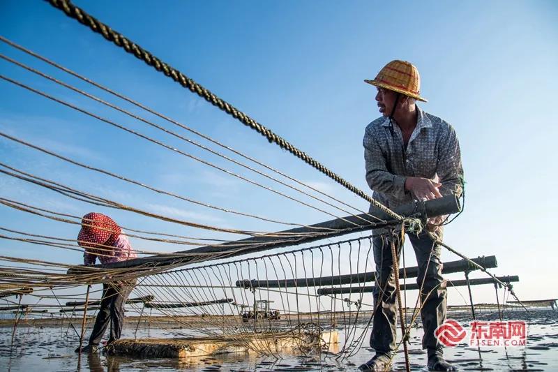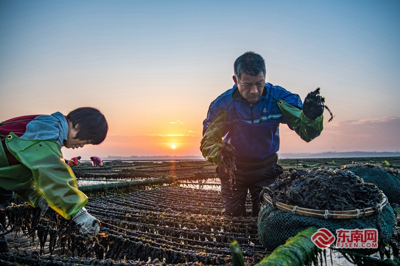 在石狮祥芝镇古浮村,渔民正在采收紫菜。祥芝镇政府 供图 _ueditor_page_break_tag_