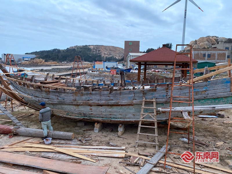 东山村码头边上,等待修葺的渔船。东南网记者 林杰 摄 _ueditor_page_break_tag_