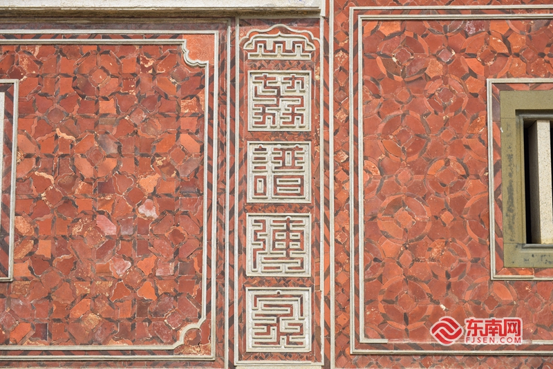在蔡氏古民居的一处外墙上,以贴砖花的形式赫然标有“荔谱传家”字样。东南网记者 林婕 摄 _ueditor_page_break_tag_