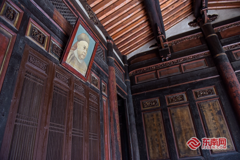 建筑群西端的蔡浅厝是蔡资深的居所,正厅堂上悬挂蔡资深画像。东南网记者 林婕 摄 _ueditor_page_break_tag_